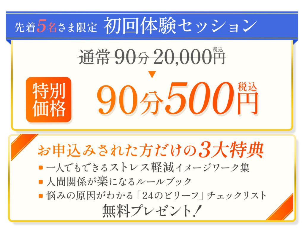 この体験セッションでは、ただお悩みを聞くだけでなく、あなたの生きづらさの根本原因(ビリーフ)をピンポイントで特定する「心の正しい診断」を行います。